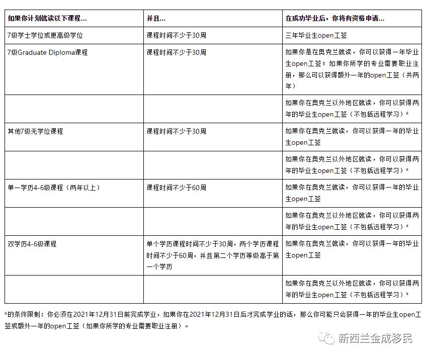 2018年8月8日,新西兰移民局发布了新的毕业生工作签证政策:
