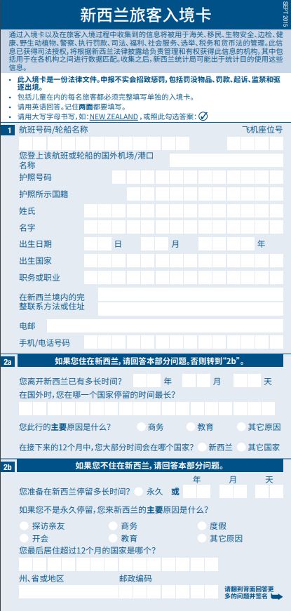 “所有入境新西兰的旅客必须填写《旅客入境卡》。